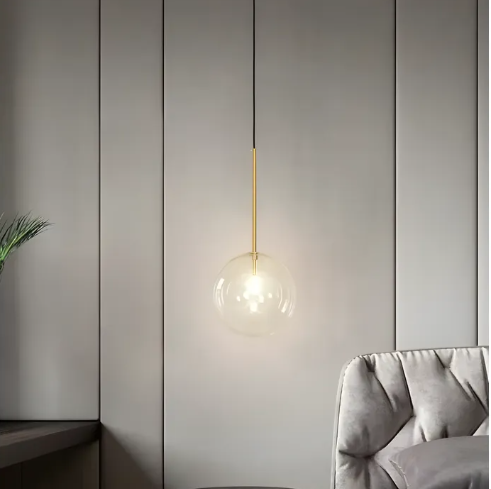 Lampa Mała Kula 20cm Złota Szczotkowana Wisząca Szklana G4 Transparentna APP1683
