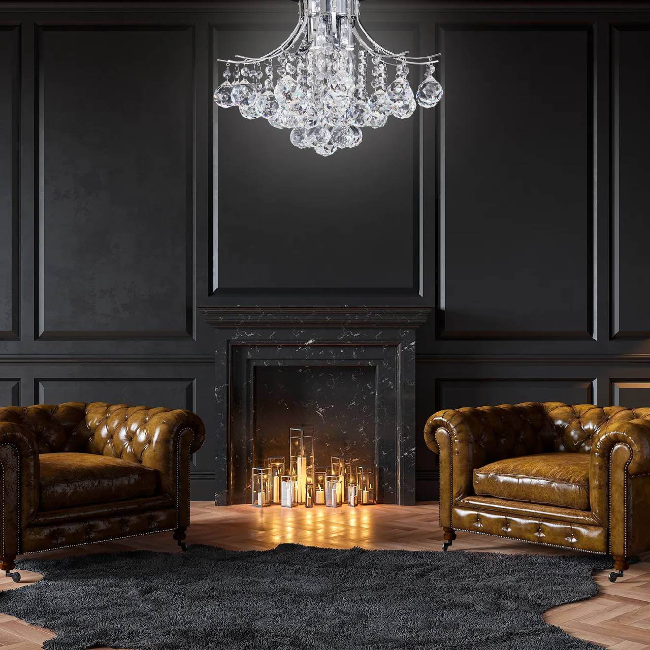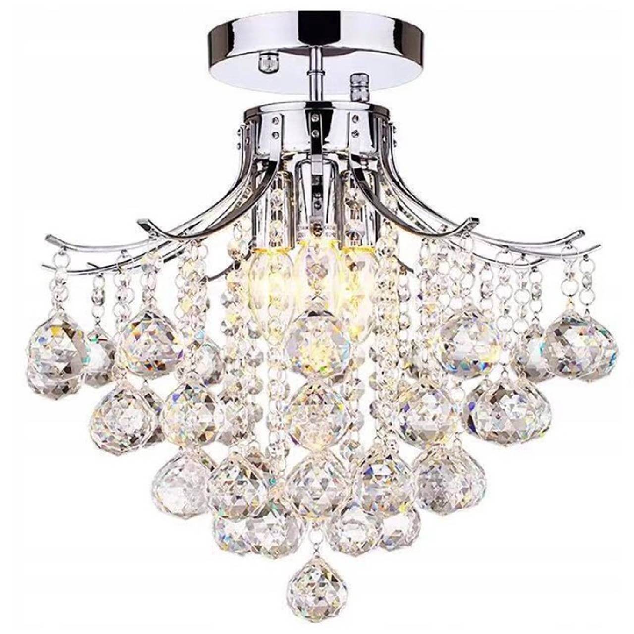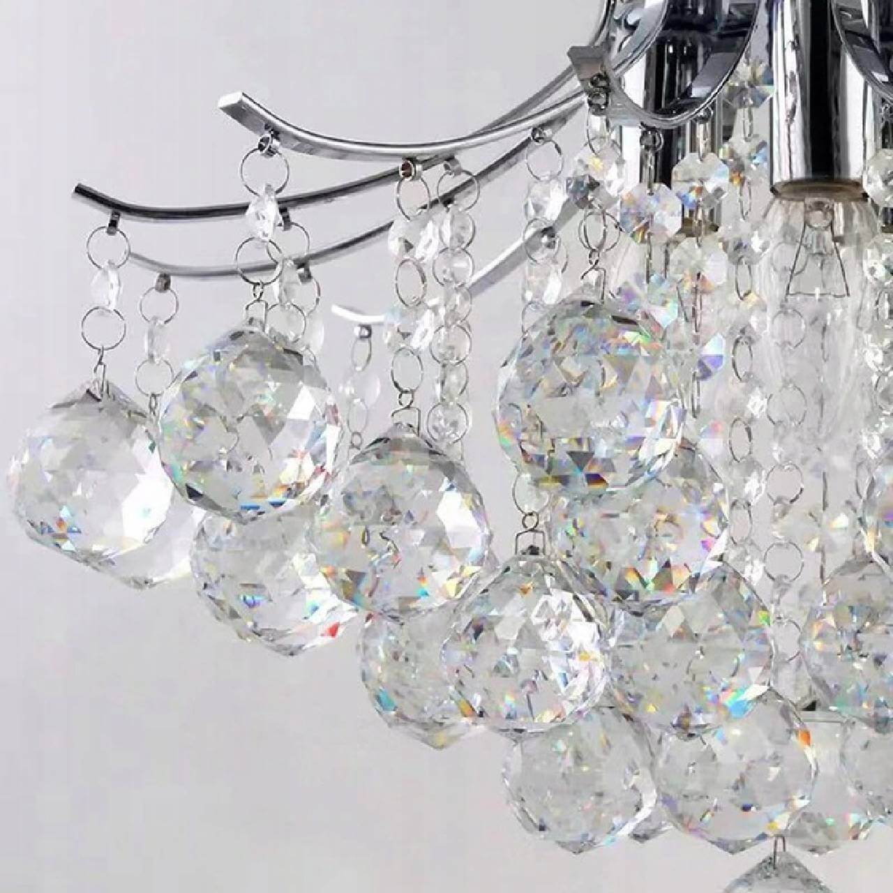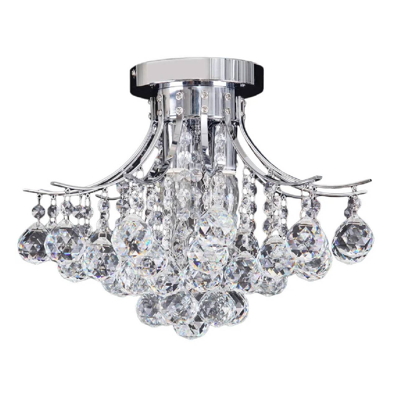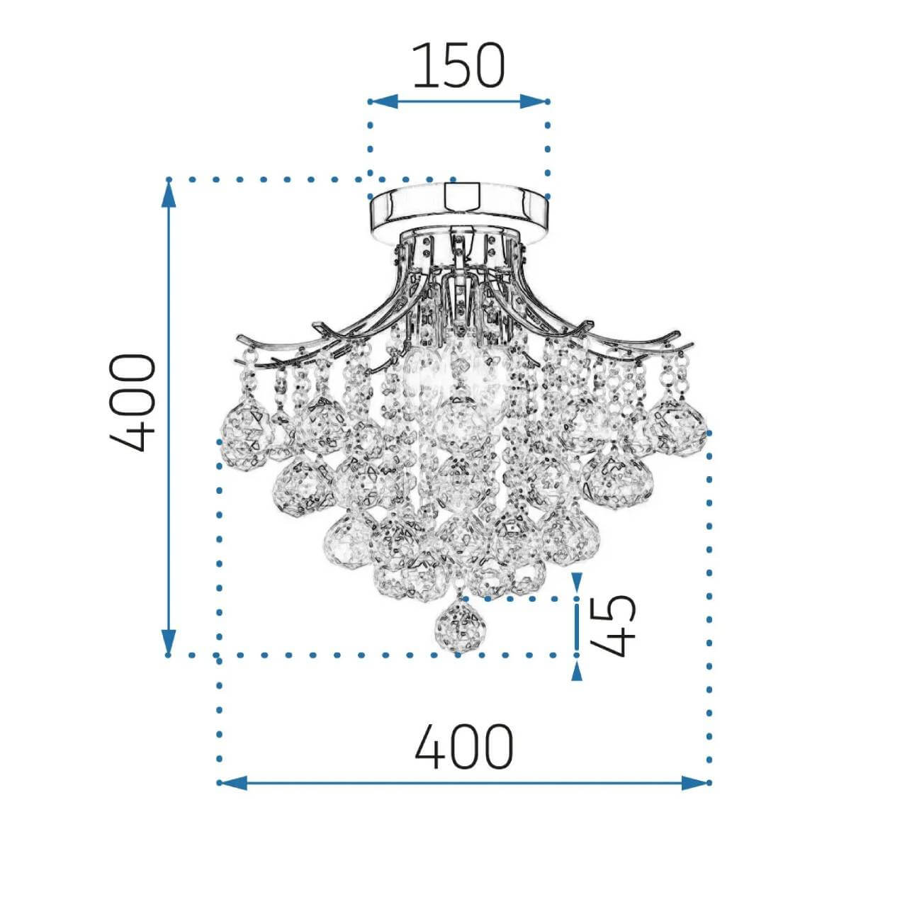 Plafon został wykonany z wysokiej jakości metalu odpornego na zarysowania czy uszkodzenia mechaniczne. Całego charakteru i eleganckiej nuty dodają kryształy rozmieszczone na niemal całej powierzchni lampy.