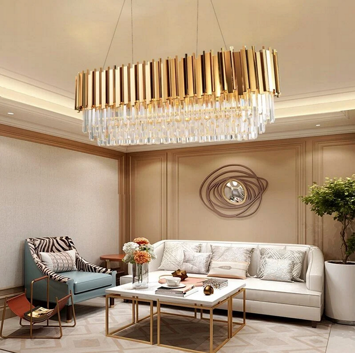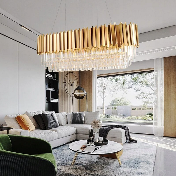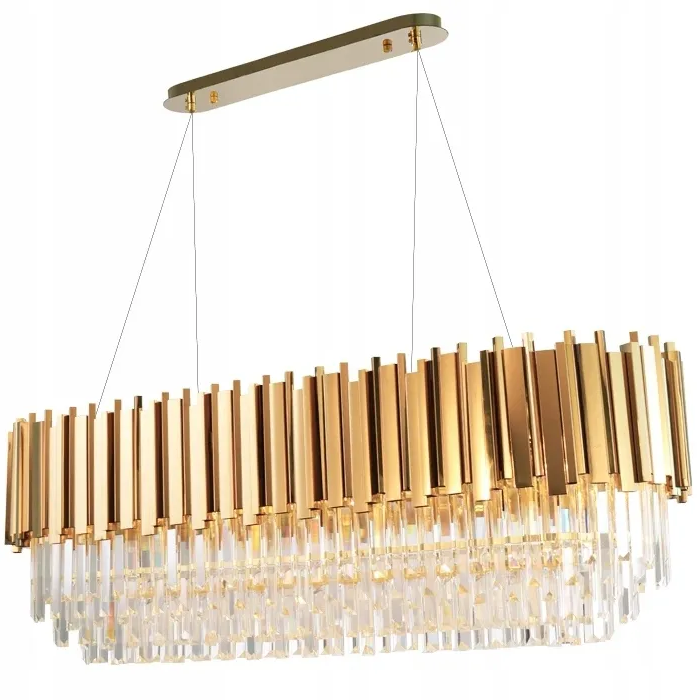 Lampa Wisząca Duża Podłużna Nad Stół Kryształowa Glamour Złota 312355