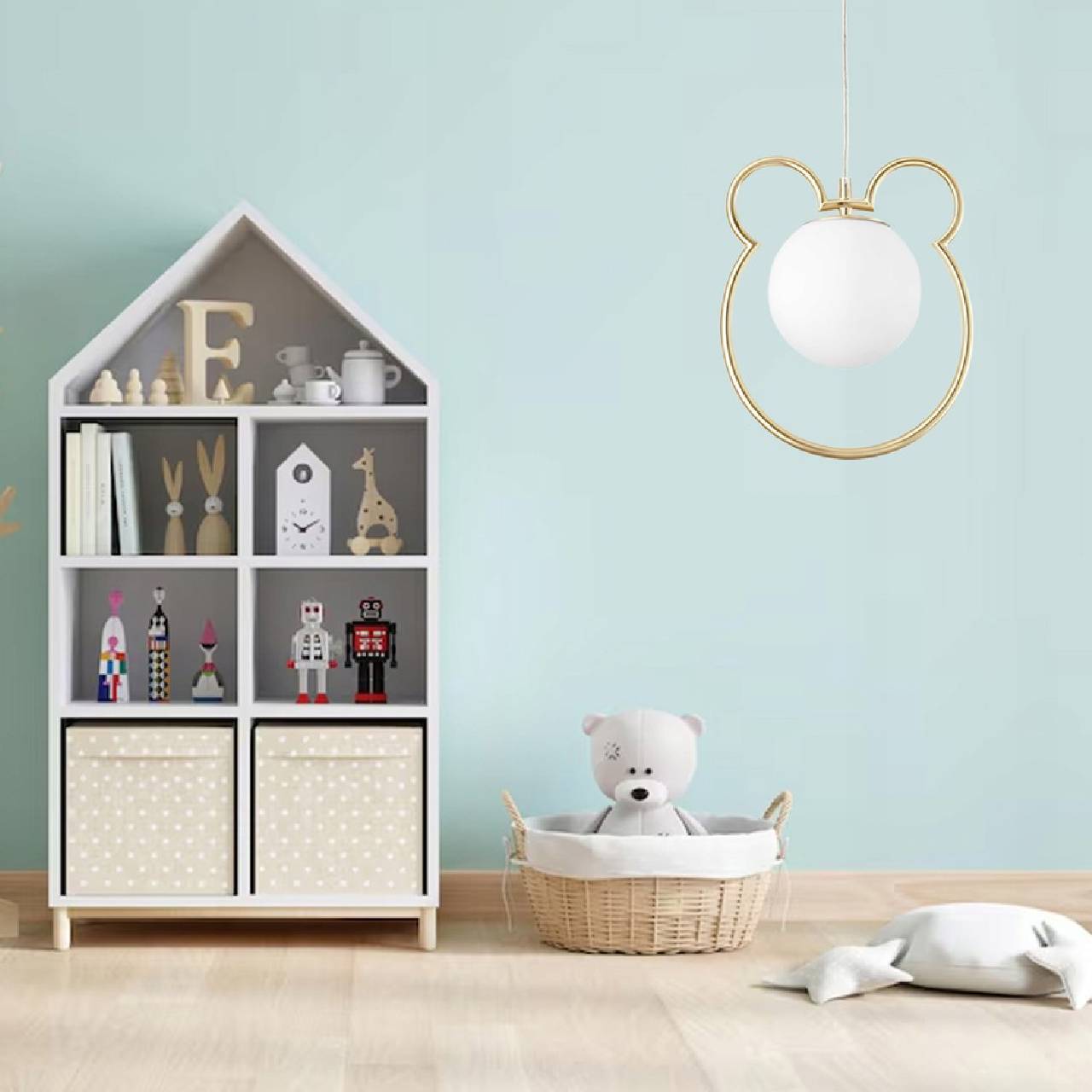 Lampa Wisząca Ozdobna Do Pokoju Dziecięcego Miś Uszka Kula Mleczna Złota G105-1W - obrazek 5