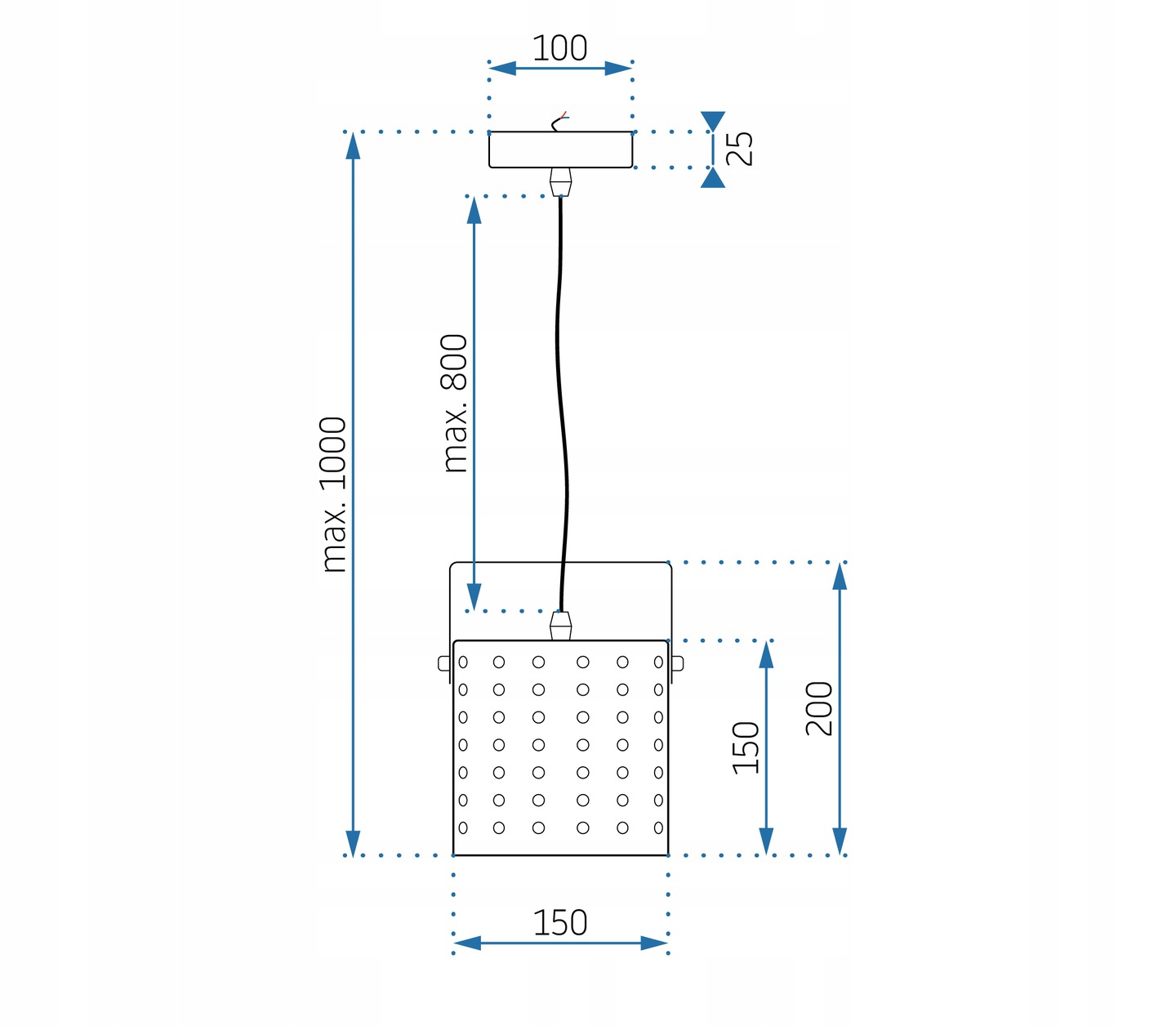 Lampa została wykonana z metalu wraz z maskownicą przy suficie. Lampa posiada tradycyjny gwint E27 stosowany w większości lamp. Długość kabla można dopasować odpowiednio do pomieszczenia bądź aranżacji – wszystko zależy od Państwa wyobraźni.