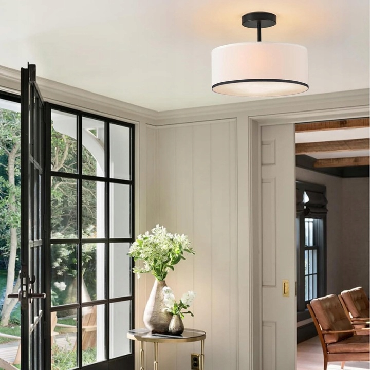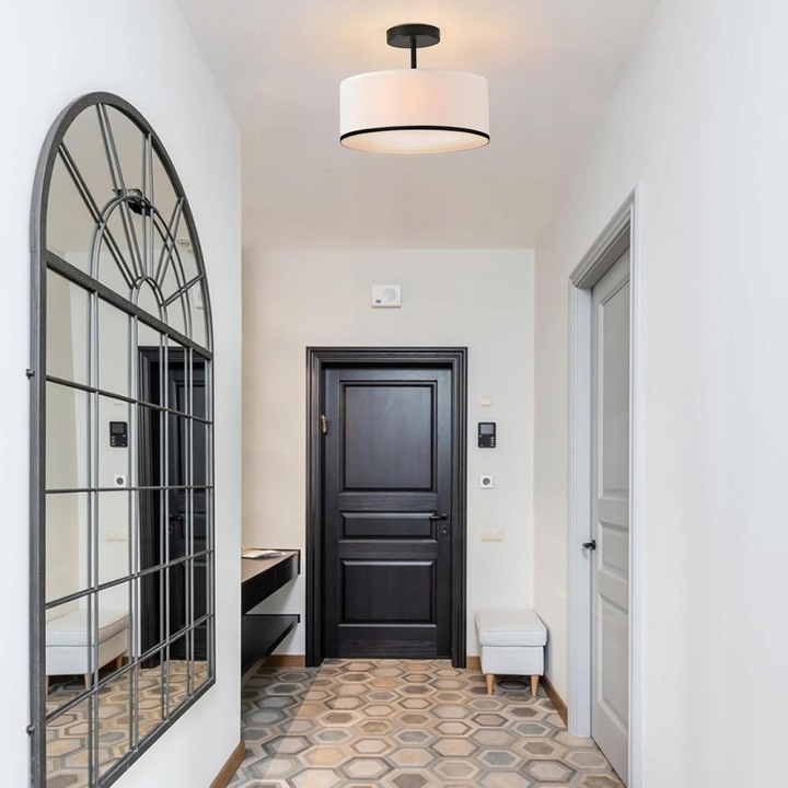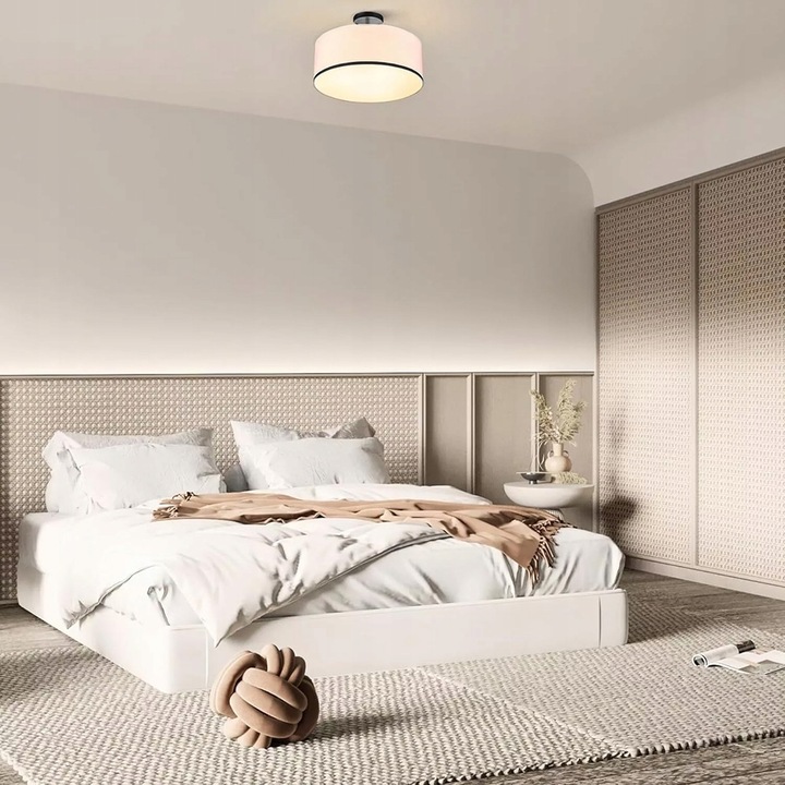 - Elegancki design – jasny abażur z czarną ramką idealnie komponuje się z różnymi stylami wnętrz.