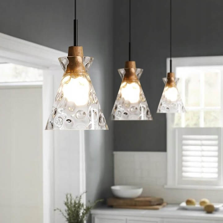 Lampa Wisząca Transparentna Falowane Szkło Drewno B APP1183-1CP - obrazek 4