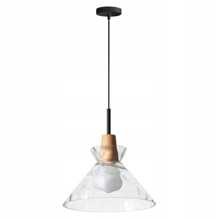 Lampa Wisząca Transparentna Falowane Szkło Drewno B APP1183-1CP - obrazek 3