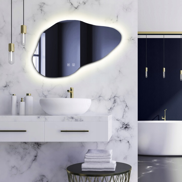 Nowoczesne lustro łazienkowe LED o nieregularnym, organicznym kształcie to połączenie funkcjonalności i designerskiej formy. Model CLOUD B doskonale sprawdzi się w nowoczesnych, minimalistycznych oraz eleganckich aranżacjach łazienek, wprowadzając do wnętrza lekkość i subtelny charakter.