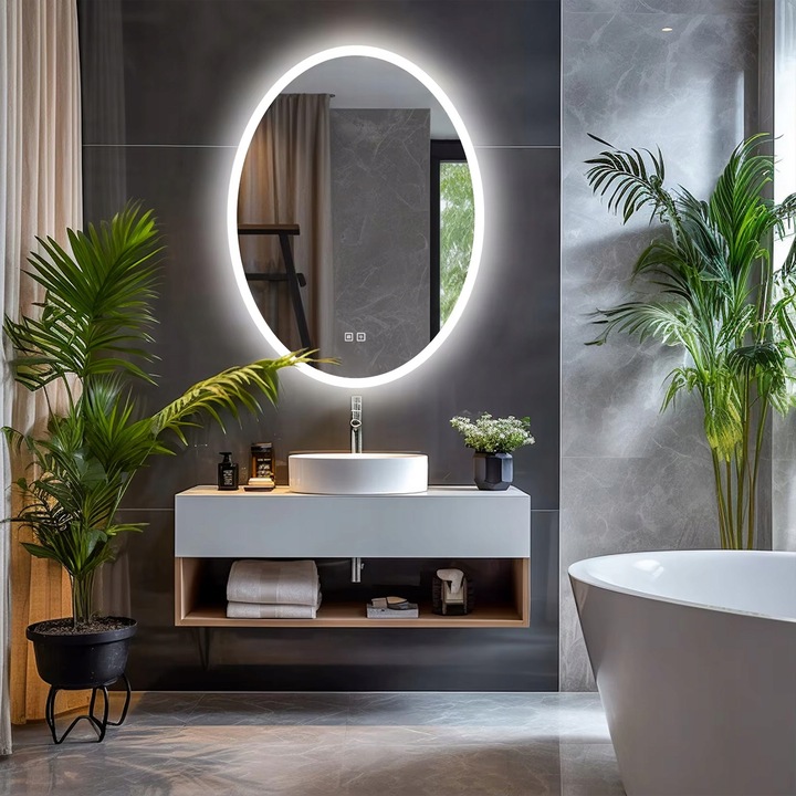 Owalne, podświetlane lustro LED to doskonałe rozwiązanie dla osób, które poszukują połączenia nowoczesnego stylu i maksymalnej funkcjonalności. Wykonane jest z wysokiej jakości materiałów, co zapewnia trwałość i elegancki wygląd, a jego ponadczasowy design idealnie wpasuje się w różnorodne wnętrza, od łazienki, przez garderobę, po przedpokój i sypialnię.