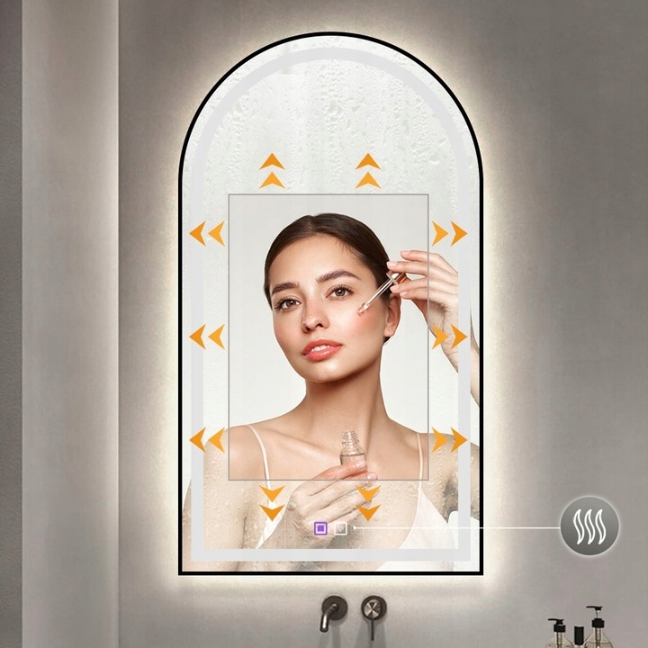 Lustro Łazienkowe Podświetlane LED Łukowe Pochłaniacz Zmiana Barwy 60×100