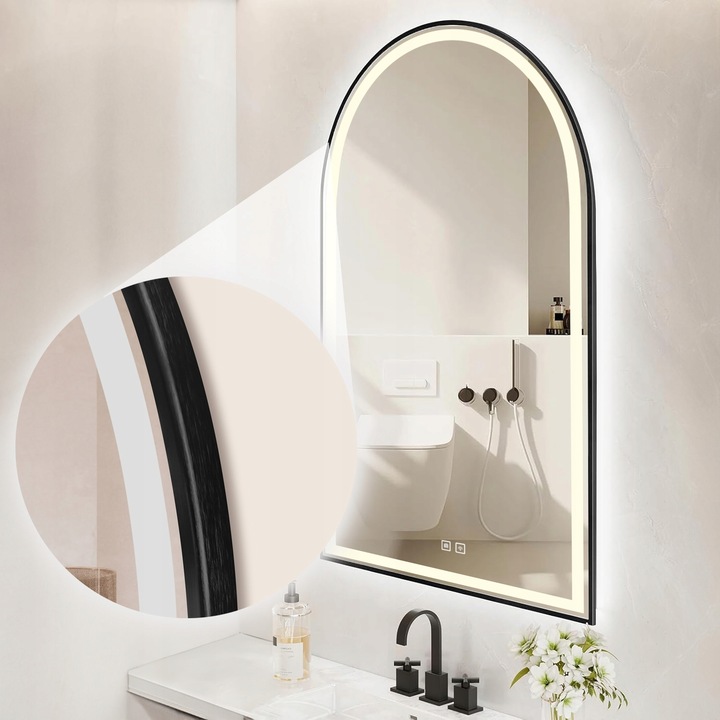 LUSTRO ŁAZIENKOWE LED 60x100cm PODŚWIETLANE ŁUKOWE CZARNE DO MAKIJAŻU
